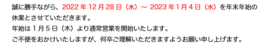年末年始休業のお知らせ