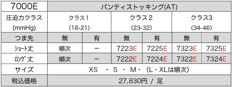 ※クラス2&3 パンティストッキング(AT)のXS・S・Mを新品番にて追加発売いたします。
