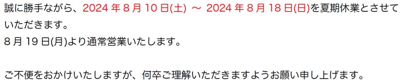 夏期休業のお知らせ